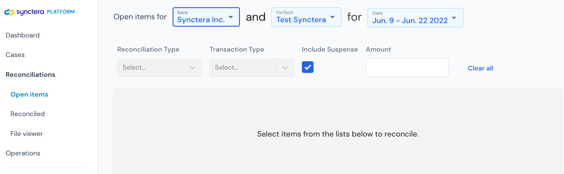 - If this does not match the settlement from the Fed, a reconciliation difference will exist that will need to be investigated based on the reconciliation function in the Synctera App.